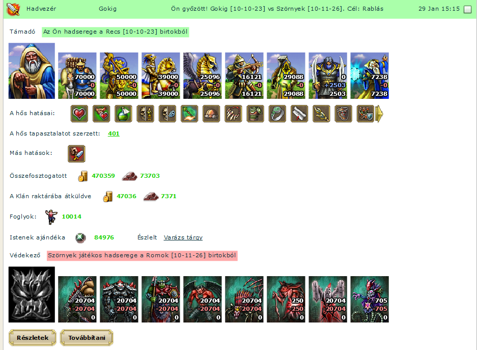 Nagy boldogság volt látni ahogy a győzedelmes sereg bevonul a várba, a nép ünnepelt és én is törvénybe iktattam hogy minden év ezen a napján egész napos ünnepséget tartunk az ország minden településén. Természetesen a kincseket melyeket a szörnyek összefosztogattak a kincstárnok bölcs és gondos irányítása alá helyeztem.