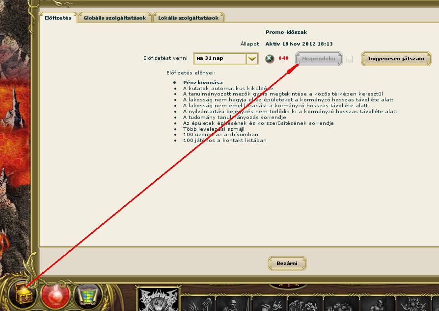 Az Előfizetés megvásárlásához kattintson a Ládára, a megjelent ablakban válassza ki az Előfizetés időtartamát és kattintson a Megrendelni gombra.