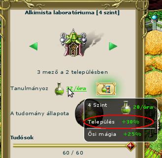 - A település bónusza, melyet megtalál bent az alkémikus laboratóriumában. Mindegyik épülethez külön alkalmazzák.