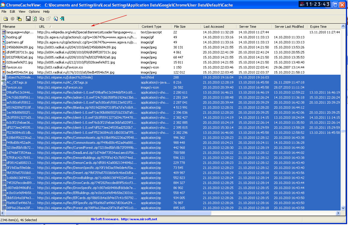 5. A megjelent ablakban kattintson az URL nevű oszlop megnevezésére, ahhoz, hogy rendszerezze az adatokat a táblázatban.