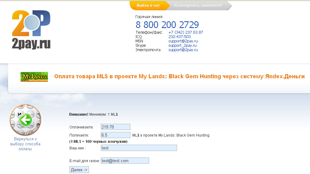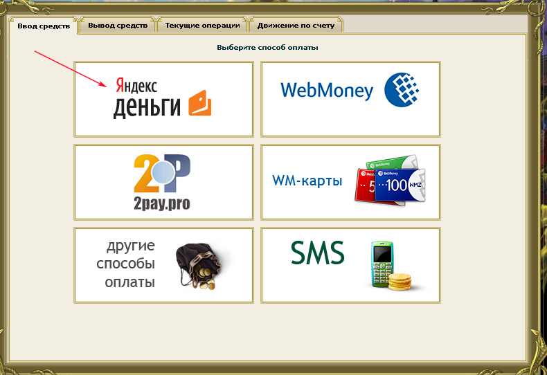 1.Kiválasztjuk a "Yandex pénz" fizetésmódot.